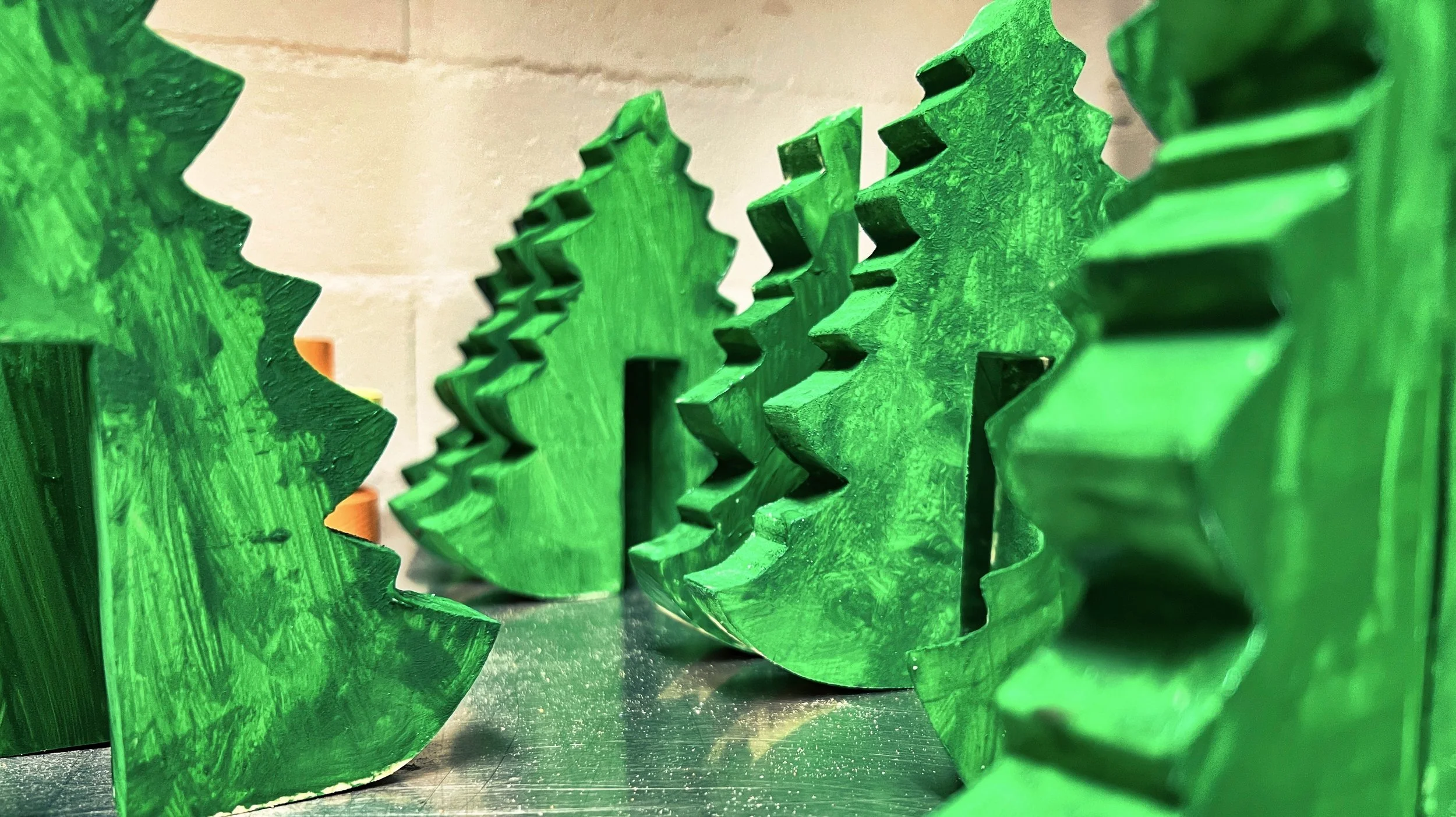 In two weeks, at the next session, the wood crafts class will add decorations to their painted trees.